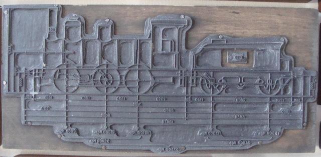 Fotolito de locomotiva - 103, em chapa de metal com imagem fotoligráfica para impressão.