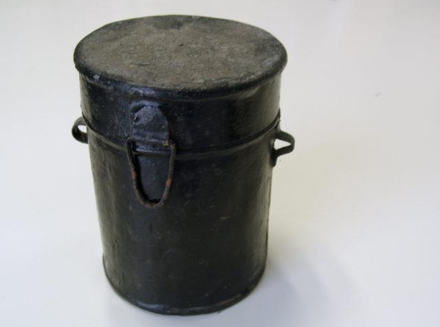 Recipiente para depósito de petardos - cápsulas metálicas com duas hastes inferiores para fixar ao carril, no interior contêm uma pequena porção de explosivo (material detonante) e explodem quando pisadas pelo primeiro rodado do veículo. Sinal portátil acústico, complementar, utilizado pelo pessoal das estações, dos comboios e da via, para reforçar a indicação dos sinais de paragem. A explosão das cápsulas colocadas sobre o carril, quando esmagadas pelo rodado do veículo, avisa acusticamente para uma situação de perigo e determina ao maquinista que se deve proceder a uma paragem imediata e/ou a redução imediata de velocidade. Sem petardos associados. Tampa não está funcional por estar "selada".