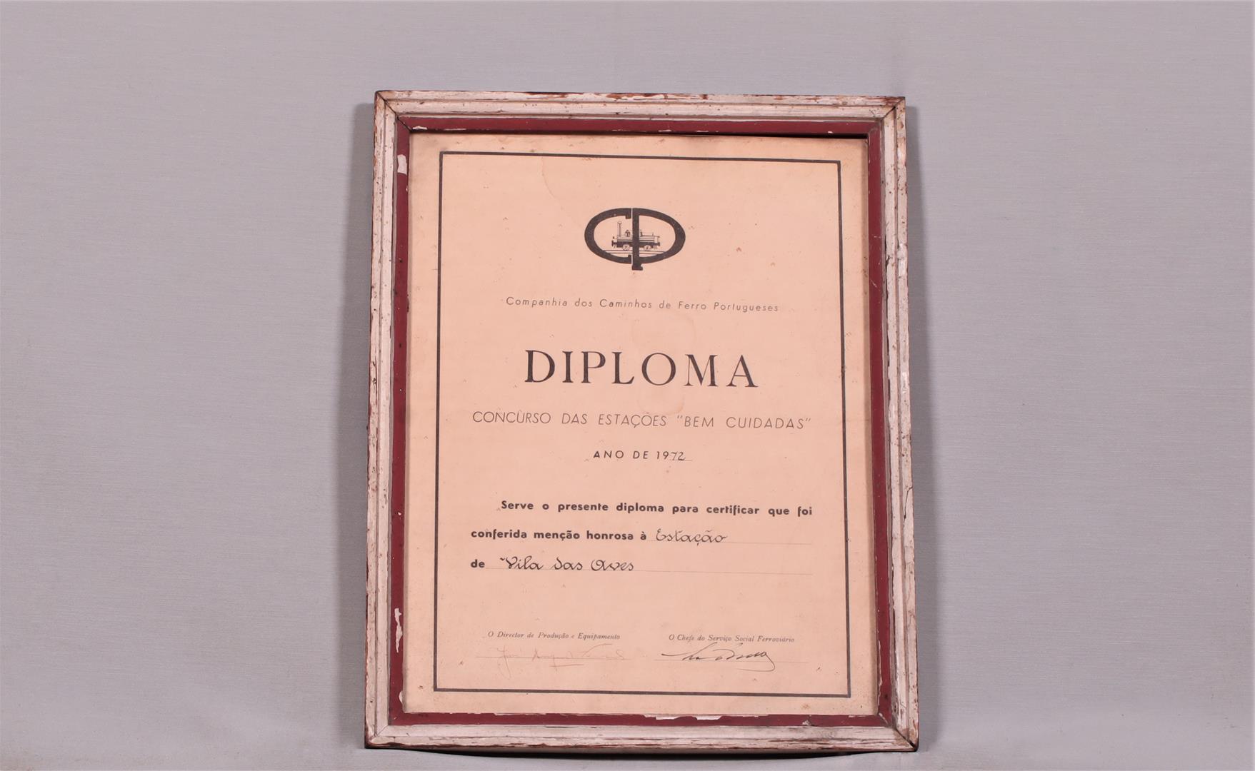 Diploma: Concurso das Estações "Bem Cuidadas" - Vila das Aves - Menção Honrosa (1972)